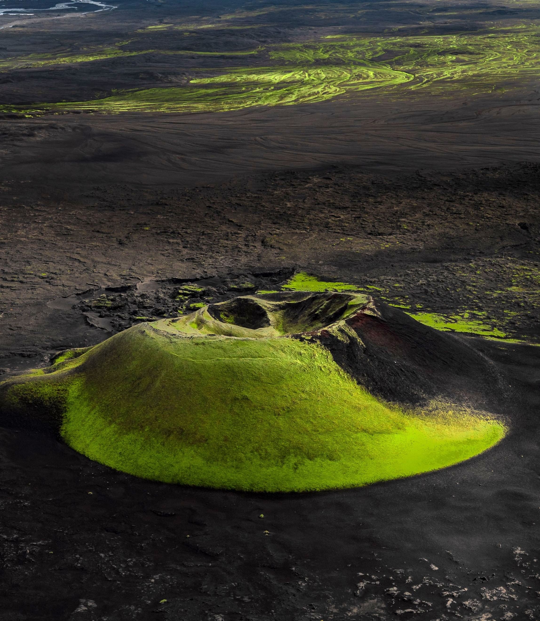 - Fly above the chain of Laki volcanic craters.